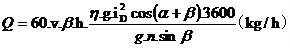 物料平均輸送速度是在一定的假設(shè)條件下建立的運(yùn)動(dòng)方程式,而實(shí)際的運(yùn)動(dòng)要復(fù)雜得多。另外物料的堆積重度、形狀、含水率,對(duì)輸送速度都有影響,因此在算出理論平均速度后還須進(jìn)行修正。物料輸送機(jī)的輸送量Q為: